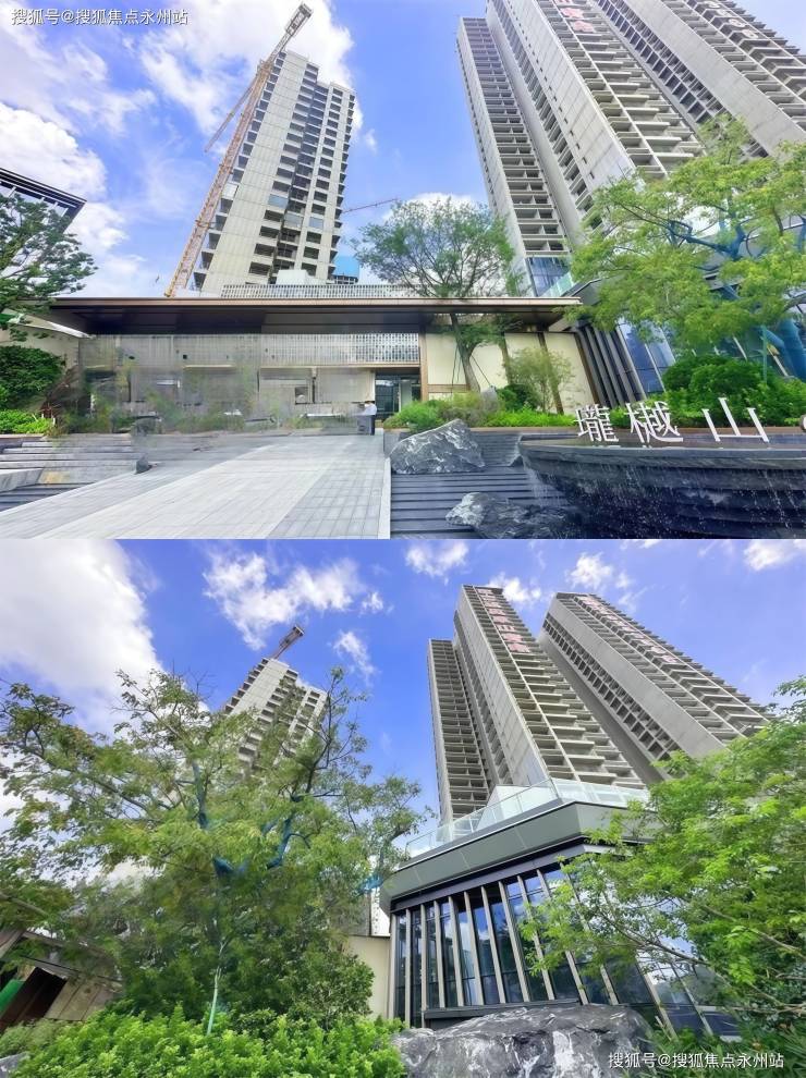 项目小区是往现代高端社区方向打造,步行大门是山林水石设计,而车行出入口则设计了酒店级回旋处落客区,跟「胤璞」很像。