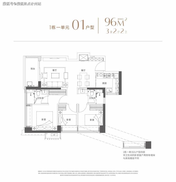 悦见倾湖将首推351套住宅房源,户型面积为96-99-101㎡的3房2卫,116-119㎡的4房2卫户型。