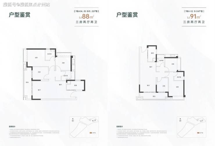 朝向:88㎡为西南/东北朝向,91㎡为东南朝向。