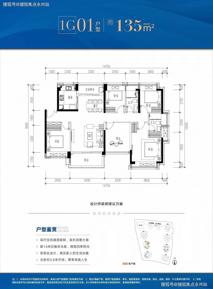 终极改善之选:楼王级配置,作为1E栋03户型,四开间朝南,客厅开间4.2米,南北双阳台设计,正南向直面约2万㎡中央园林与明湖城市公园,景观视野无遮挡。套内107.5㎡+赠送21.81㎡,实用面积达129.31㎡,主卧套房面积达25㎡,带独立衣帽间与卫浴,可定制双台盆与浴缸。