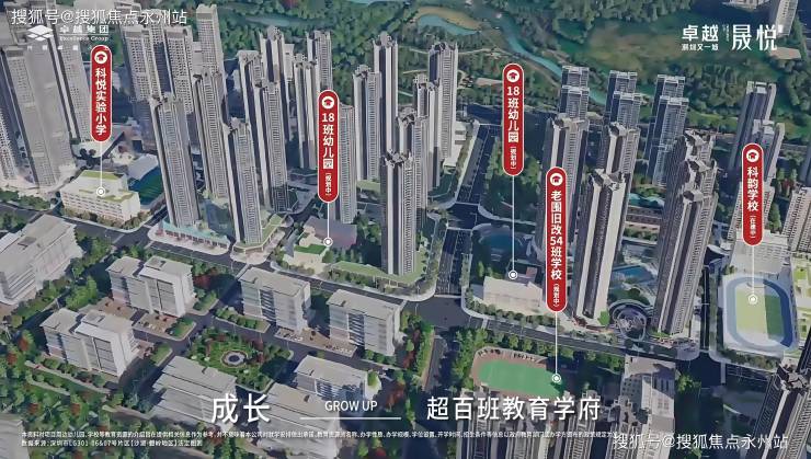 项目自带2所18班幼儿园,周边覆盖科悦实验小学(已开学)、科韵学校(54班九年一贯制,在建)、科源实验学校(42班九年制)及深圳实验坪山分校(初中),均由坪山实验集团或深实验集团管理,实现“家门口入学”。