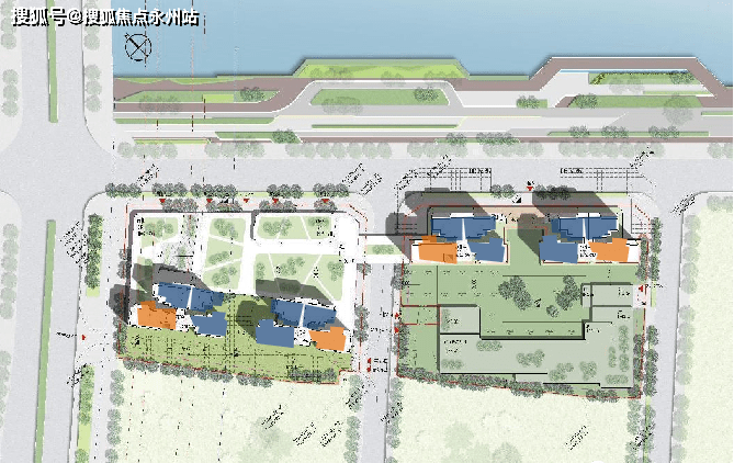 小区为长条形地块构成,共分两个地块,一字排开的四栋楼,二楼有连廊连接,地下车库连通,占地14346㎡. 住宅建面35922㎡,商业建面5149㎡,规划18班制幼儿园5800㎡,容积率3.27,高度为18-23F的小高层纯住宅,东北向一线临河,全无遮挡。