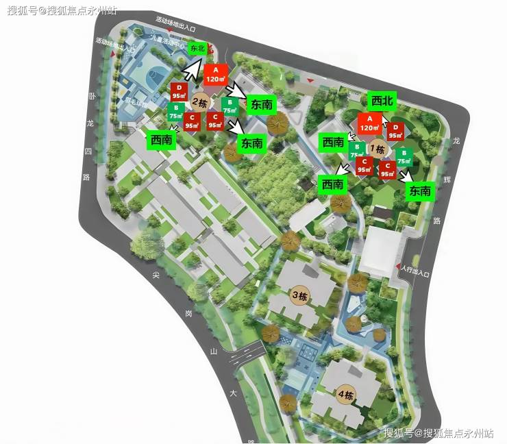 共由4栋总高30-32F的住宅组成,其中1/2栋商品房32F,3/4栋人才房30F。