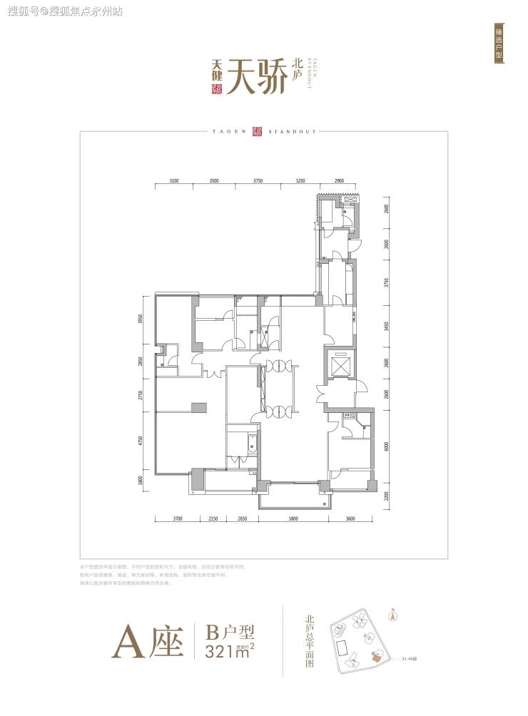 1栋A座:148米,46层,共85户,朝南为主,三梯两户,约266-321平,427平(顶复)