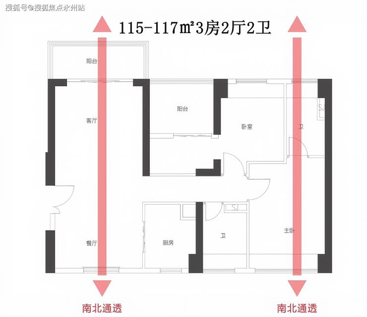 115-117㎡3房2厅2卫:位于4栋,南北通透,透气通风。客厅次卧全山景,景观视野好,安静舒适,私密性强。