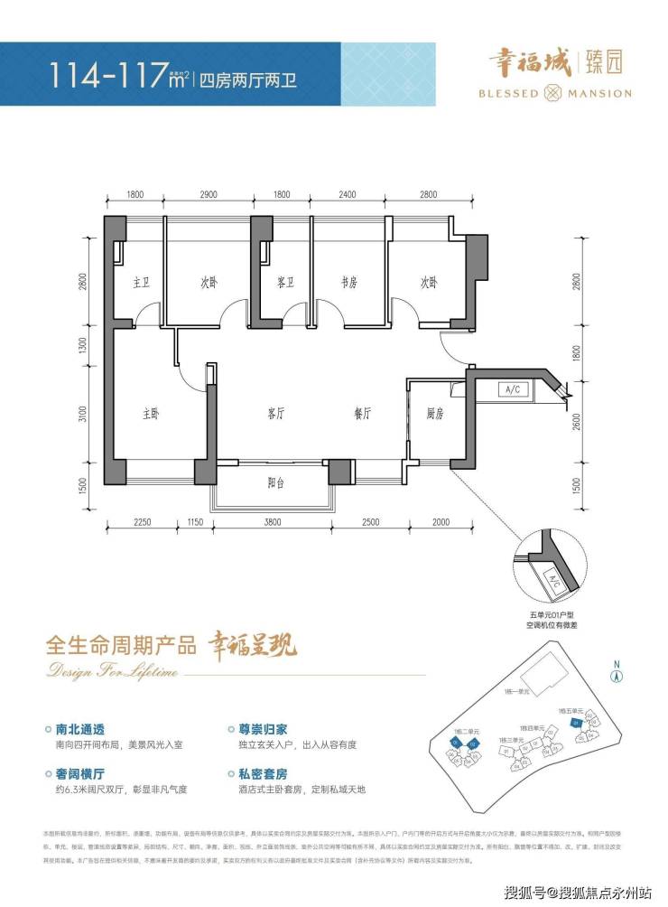 建面114-117㎡四房两厅两卫(横厅):南北通透格局,客餐厅约6.3米开间,全屋南向采光,空间通透开阔,兼顾老人、孩子多代同堂生活,适合升级型家庭。