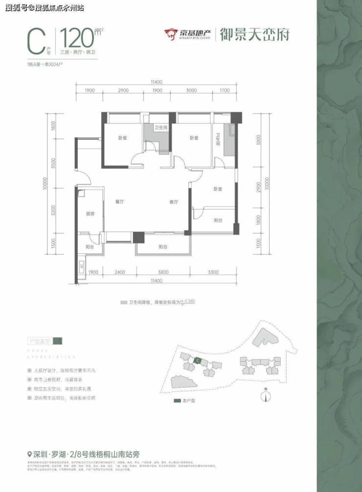 2、以上所发布的关于京基御景天峦府户型图与样板间实拍图所示平面仅供参考,具体因楼栋、楼层的差别,局部结构、面积等存在不同,不构成要约内容。户型图与样板间内部实拍图所示家具和电器配置仅供参考,不作为交付标准,最终以买卖合同为准。