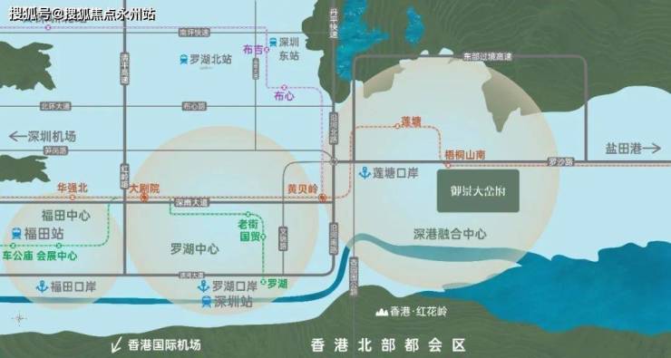 项目北眺梧桐山麓,南瞰香港红花岭,一寺两湖三公园环伺,速达东部华侨城、大小梅沙,荟萃山海湖园,多重生态资源簇拥。