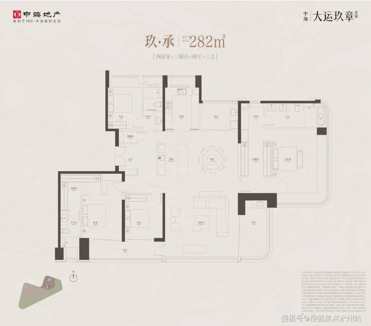 282㎡四房两厅三卫 ——43席的顶级藏品,项目的楼王产品,全小区仅43席,堪称稀缺中的稀缺,该户型东南向无遮挡,占据楼栋端头位置,270°环幕视野覆盖大运湖、体育中心及城市天际线,是片区唯一的"山湖城三重景观"产品。