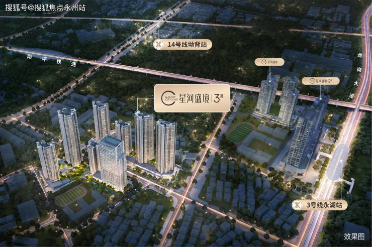 星河盛境位于地铁坳背站A口/永湖站C口(红棉路与永安路交汇口),集商业、住宅、办公于一体的复合型精粹综合体,位于龙岗区3号线永湖地铁站,是真正的地铁上盖物业。