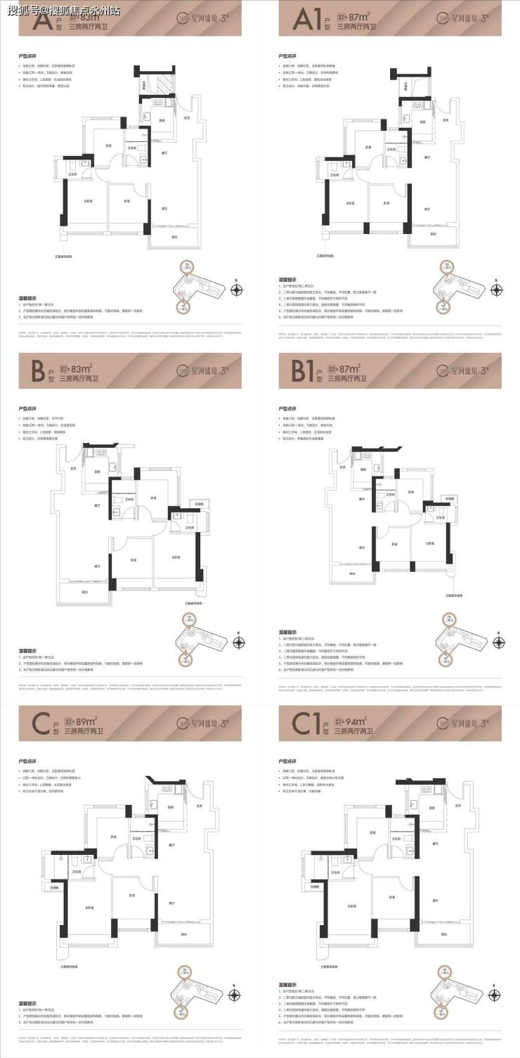 深圳龙岗星河盛境3期83-113㎡3-4房户型图鉴赏!