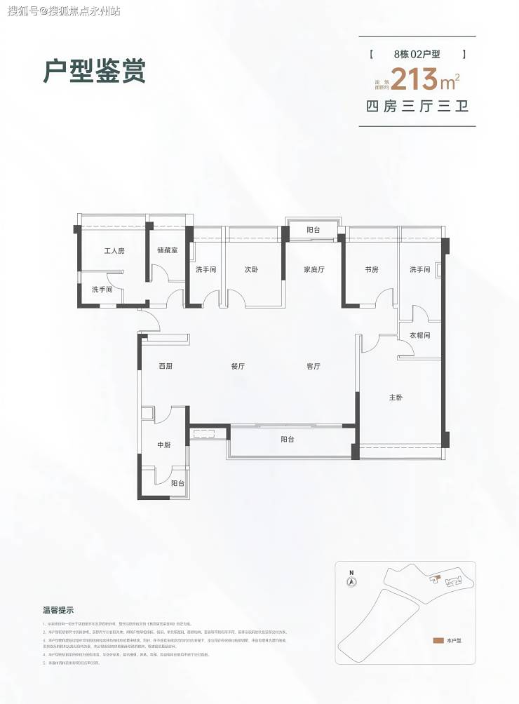 8栋毛坯:163㎡四房三卫、213㎡四房三厅三卫。