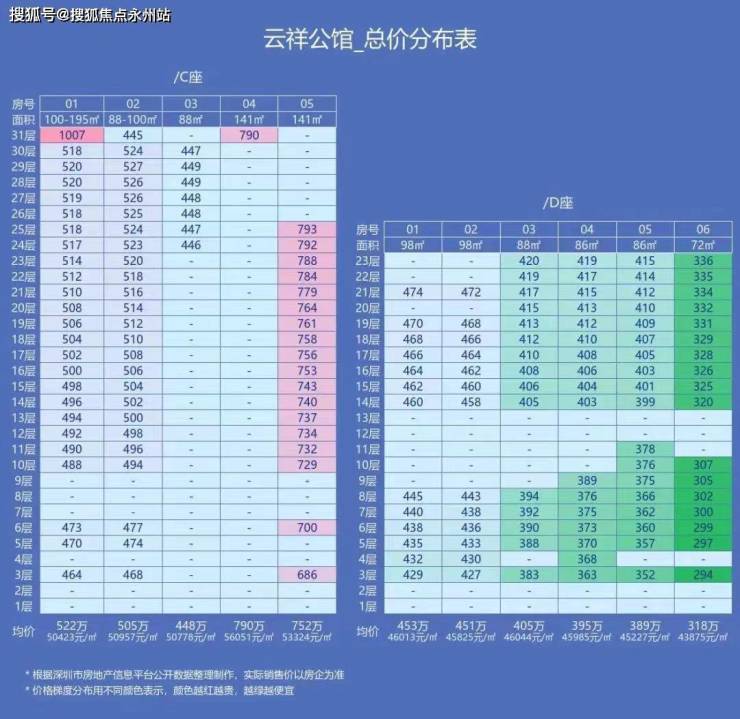 项目共有317套,这次首推1栋C/D座,共有169套房源,户型面积有72㎡的2房1卫,86-88㎡的3房1卫,99㎡的3+1房2卫,140㎡的4+1房2卫,楼盘备案均价为48119/㎡,备案价格为293-1007万,预计在2026年9月底精装交房。(深圳言成云祥公馆售楼处电话:400-992-0669)