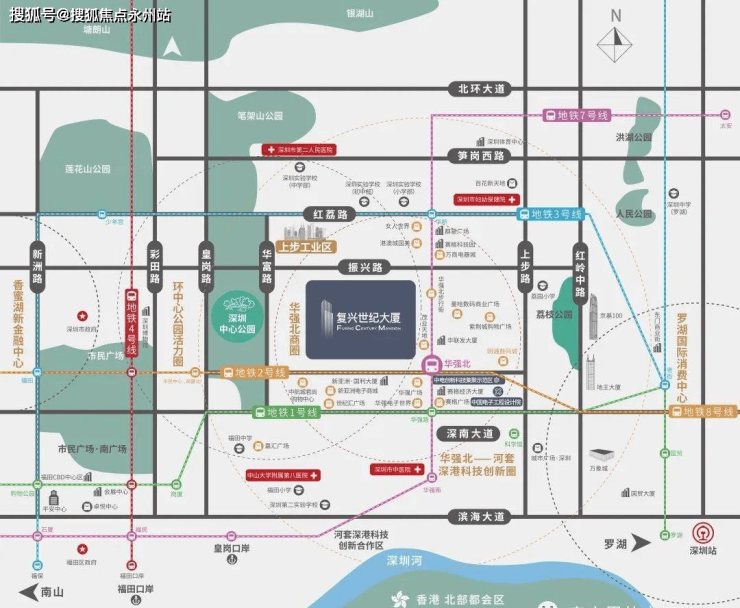 交通枢纽C位,地下商业直连2/7/8号线华强北地铁站,1站换乘1/3号线,四地铁/三大道/三大口岸/双高铁站