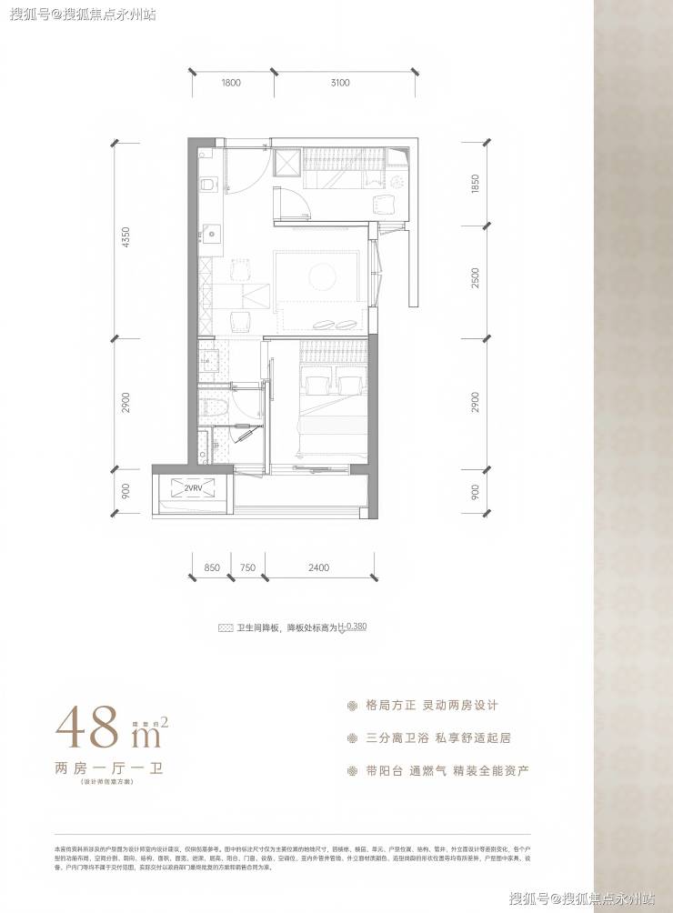45-48㎡小两房(可改造性强):功能齐全,空间利用率高;折后总价195万起,租金可达7000元/月,回报率超4%。