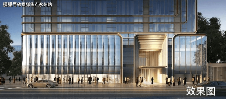 约150米垂直业态综合体,通高弧型双银超白玻璃立面,如水晶之塔。涵盖摩登商业、休闲会所、空中泳池、臻质美宅、星级酒店&高端服务式公寓。