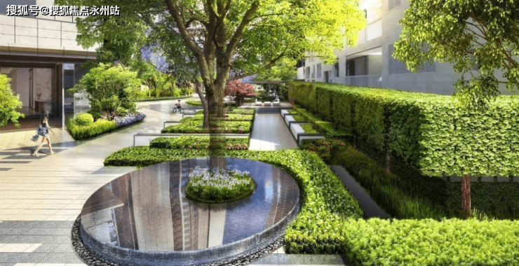 在项目的总体规划中,采用了片区稀缺的围合式布局,保证楼间距与住宅庭院的最大化;总面积约2.8万㎡的多层次立体园林,将“无界花园,生活艺述家”的设计理念融入了整个场地。