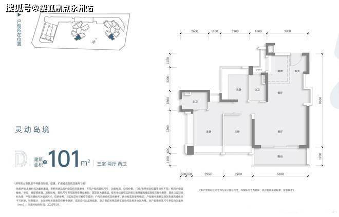 101㎡的3房2厅2卫,设计的是竖厅格局,客厅5.1米开间,S墙设计预留嵌入式冰箱位,动静分区,三开间朝南,3个卧室分别做到了2.95米/2.7米/2.7米的宽度,主卧/1个次卧都是L型飘窗,U型厨房,得房率:78.4%(不含赠送),阳台1.7米进深,朝南向或东南向。