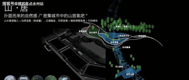 引龙下山,引水入园:瓏樾山通过抬地式园林景观和层叠水系将塘朗山龙脉引入园林,打造深圳唯一山地多层无边界立体泳池,造就与自然平等相处的“流水森林”。