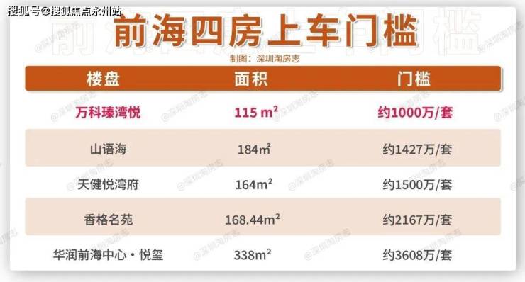 前海最新拍出的宅地,毛坯限价约10.7万/平,假如该项目未来也有四房产品,同面积段(按建面115平计算)的产品上车门槛(按建面115平、单价10.7万/平计算)比起万科瑧湾悦至少要贵200多万。