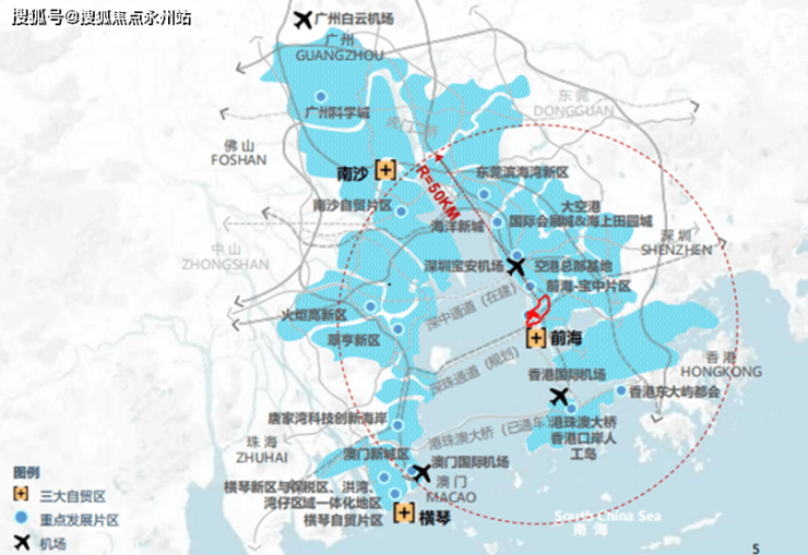 来源:网络 | 粤港澳大湾区及前海片区示意图