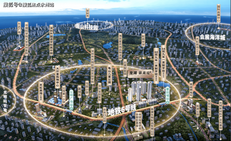 龙湖御湖境花园,位于光明区马田街道福兴路与松白路交汇处东南侧,在光明薯田埔社区土地整备利益统筹范围内,西北侧为6号线薯田埔地铁站,东面临近公明西环大道和南光高速。