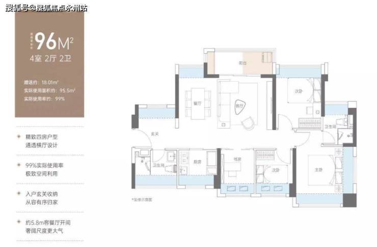 如果你追求一步到位,项目还有主推的96㎡四房两卫。