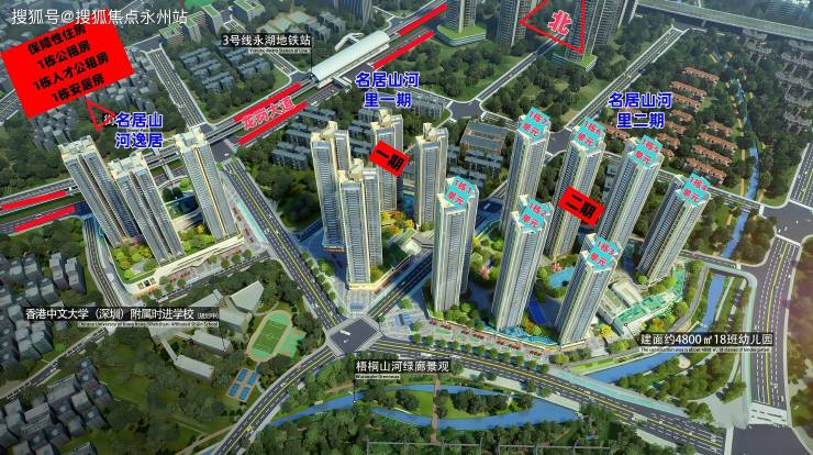 项目位于龙岗区园山街道3号地铁线永湖站东南侧150米,地处龙岗黄金三角地带,北邻大运新城,东侧是阿波罗未来产业城,西南侧是横岗中心片区。