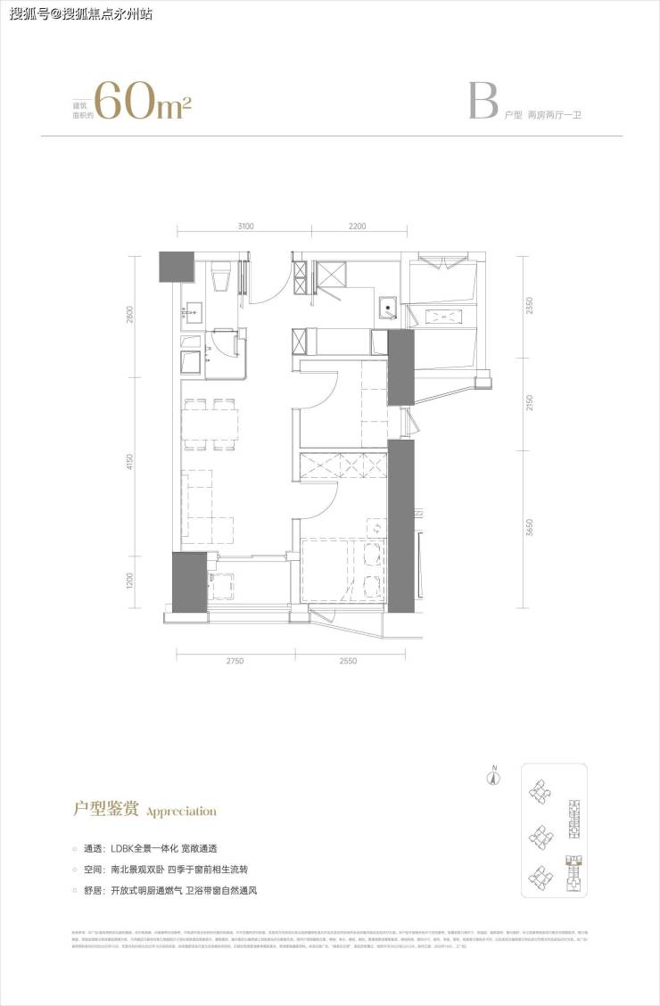 稀缺性:片区罕见带阳台的南北通公寓,双阳台设计(景观阳台+生活阳台),客厅开间4.2米。