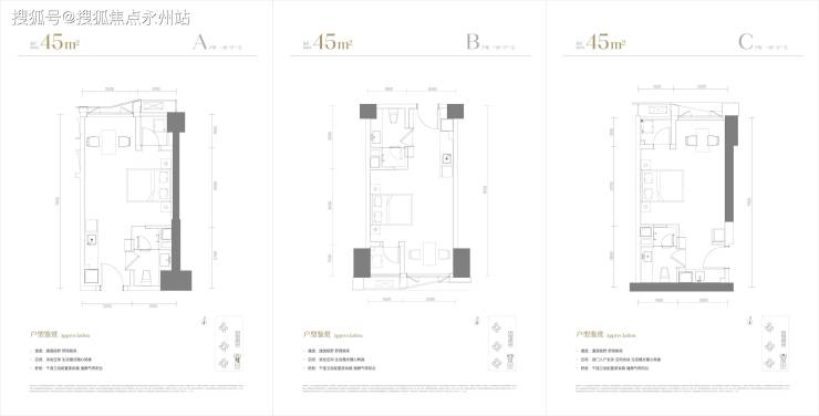 房源信息:主力户型为45-75㎡一至两房,总价230万起,单价5.1万/㎡起。