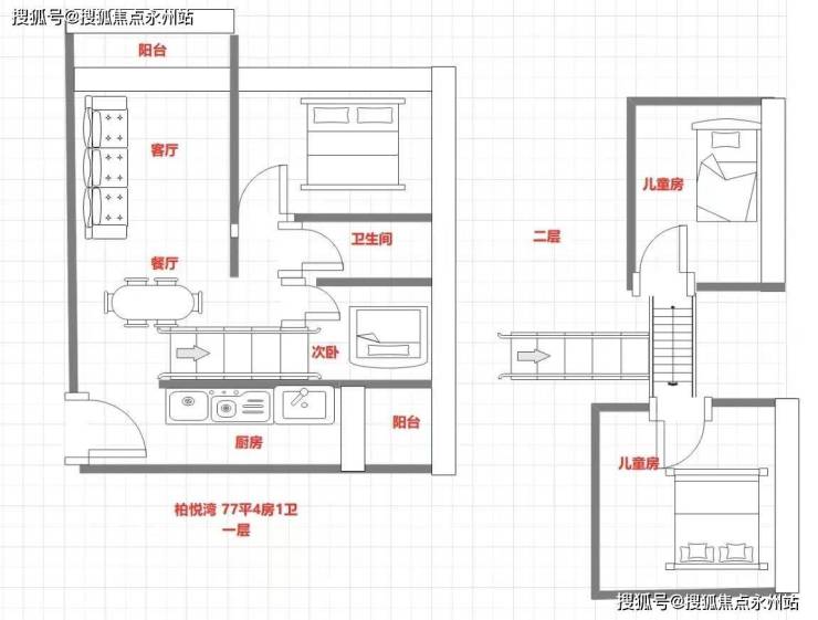 77㎡4房1卫:一层4套端头位置东北,西北,东南西南,双面采光景观4面景观