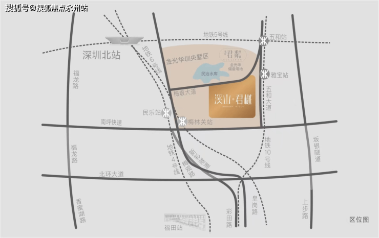 溪山君樾的占位非常特殊,位于福田CBD和龙华CBD的交汇处,也就是深圳的正中心,从地理位置而言,它是龙华盘,但从实质享受的资源配套而言,它也可以算是福田盘。
