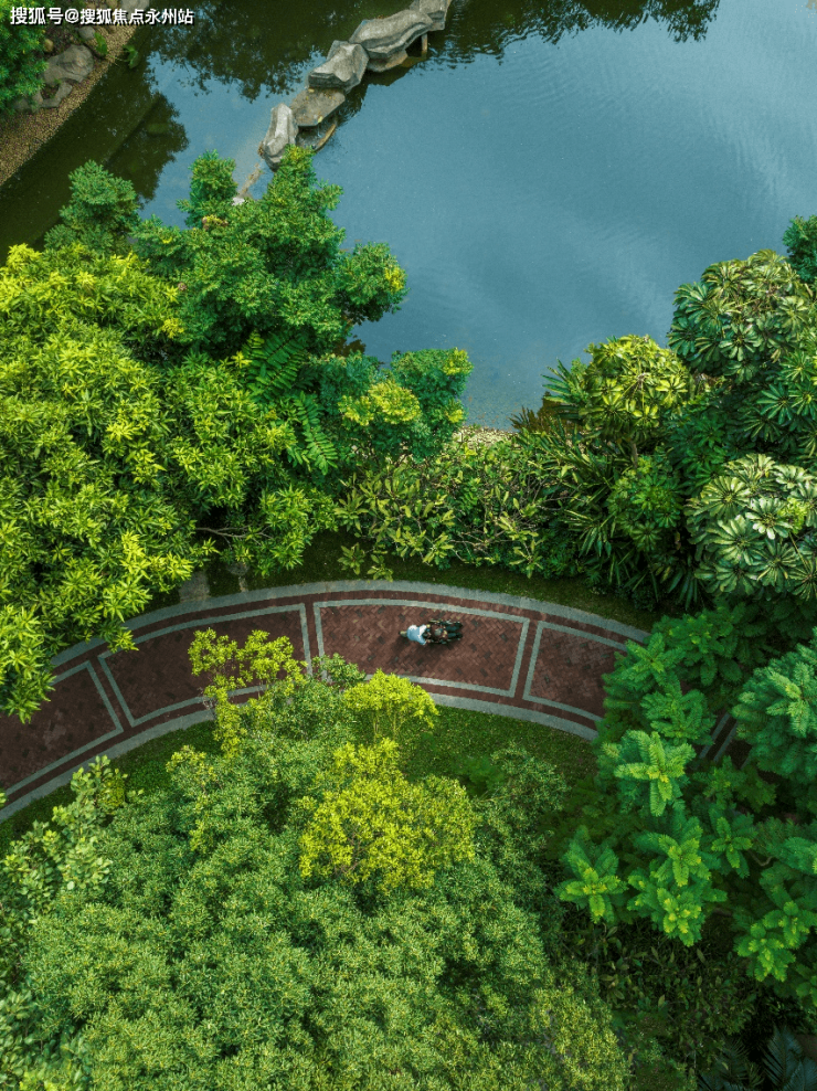 所以溪山君樾的园林,达到了约5万平,几乎是同体量社区的10倍,住在其它社区,下楼是一小片的草地、绿植,住在溪山君樾,下楼是如森林般的绿意秘境。