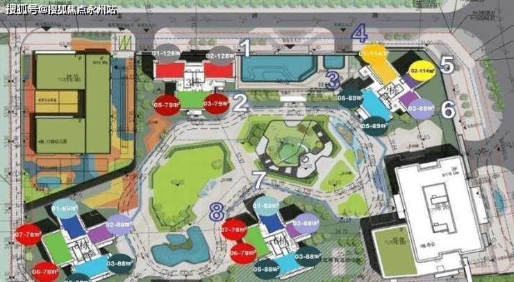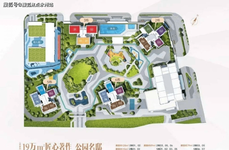 项目由4栋住宅、1栋幼儿园、1栋办公楼组成,2、3、5、6栋为住宅,其中2栋最高42层,3、5、6栋都是41层。