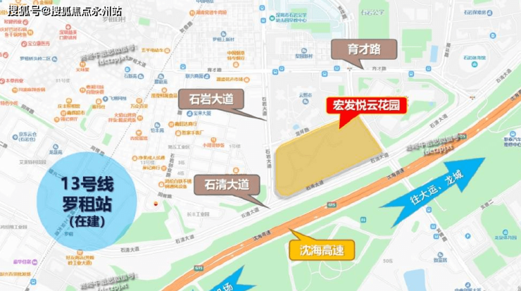 项目位于石岩片区石岩大道、石清大道、龙腾路、龙详路的围合范围。北面为项目一期(云熙谷);宏发悦云花园前身为宏发云熙谷二期,此次亮点为有79㎡小户型三房,地铁13号线罗租地铁站600米,两站进南山西丽,后更名为宏发悦云花园。项目规划住宅共约803户,容积率4.8,车位1478个,一共6栋,1栋是办公,4栋是幼儿园,2、3、5、6栋是住宅,其中2栋最高42层,3、5、6栋都是41层。