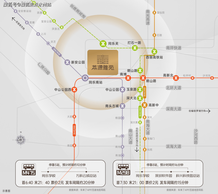 荔源雅苑距离12号线同乐南站900米距离,还有建设中的15号线同乐关站双地铁口物业,贯穿前海、后海、南山、宝安等重要片区,环经济发展核心区域。可以快速通达宝安中心区,南山高新园,深圳超级总部基地,前海自贸区。周边还有南坪快速,南山大道,北环大道,京港澳高速等交通要道,出行便捷。