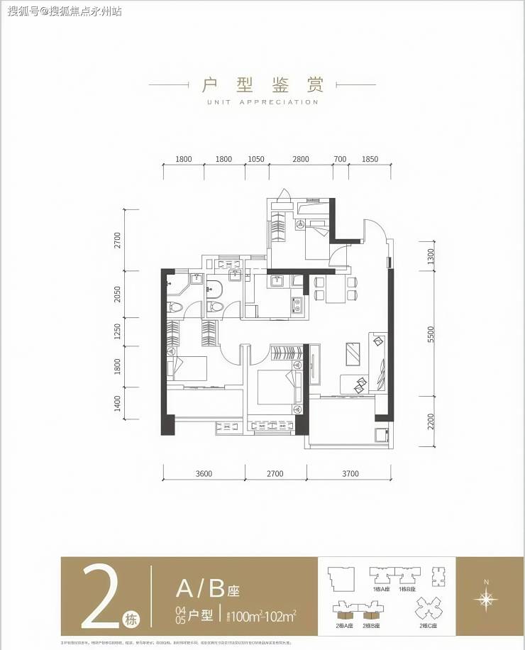 梯户比:1栋 3梯4户, 2AB栋 3梯5户, 2C栋 3梯6户