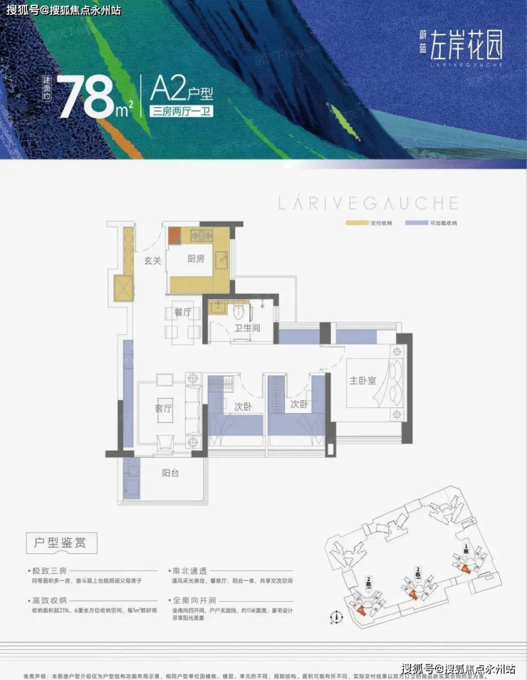 极致3/4房 同等面积多一房,主力户型为72-112平米的3-4房(带装修)户户南向,四面宽设计,尽享阳光美景,居住更舒适。