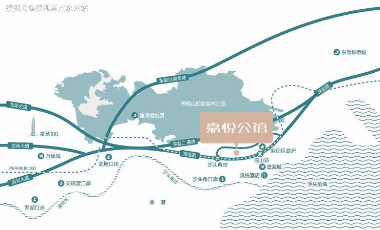 项目位于盐田区沙头角街道核心区域,紧邻地铁8号线沙头角站C口,步行距离约700米,5分钟可达,背靠梧桐山生态屏障,南眺19.5公里大鹏湾海岸线,部分高楼层户型可享"山海双景",负氧离子浓度常年高于外区60%,空气质量优良率达100%。(深圳盐田合泰嘉悦公馆开发商售楼处电话:400-992-0669)