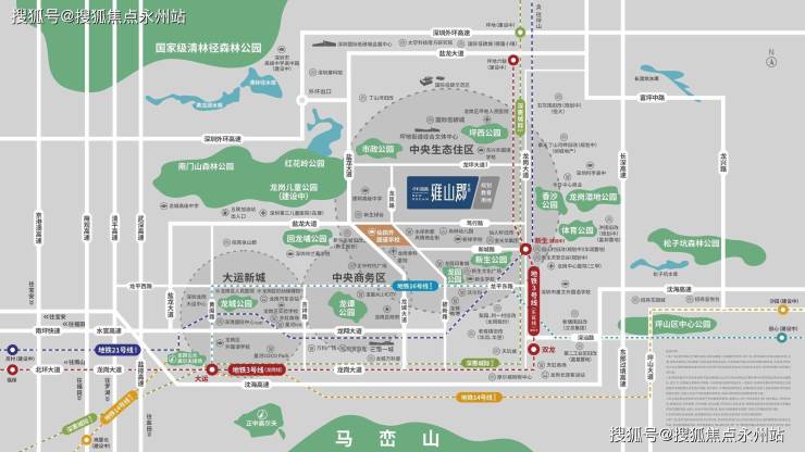 保利招商雍山郡,地址位于深圳市龙岗区龙岗街道新生社区龙凤路与龙坪路交汇处西侧,项目规划总占地面积约2.49万㎡,规划总建筑面积约18.27万㎡,计容积率建面约13.49万㎡,其中住宅建面约11.3万㎡,商业约1.02万㎡、幼儿园约1600㎡,菜市场约500㎡,小区另有活动文化室、公交首末站、物业管理用房等基础配套设施。