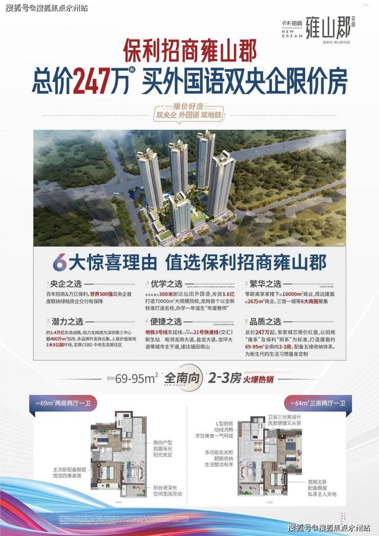 两大央企联手打造的保利招商雍山郡现打折清盘中,项目主推69-95平全南向2-3房,总价180万起就能上车双央企打造的双地铁盘,价格着实让人惊喜。