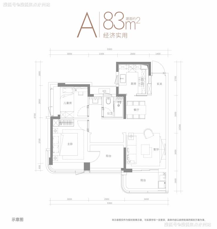 空间利用率标杆:通过 L 型飘窗(次卧)、阳台半赠送设计,实现三房布局,比同面积段竞品多出1个功能区。
