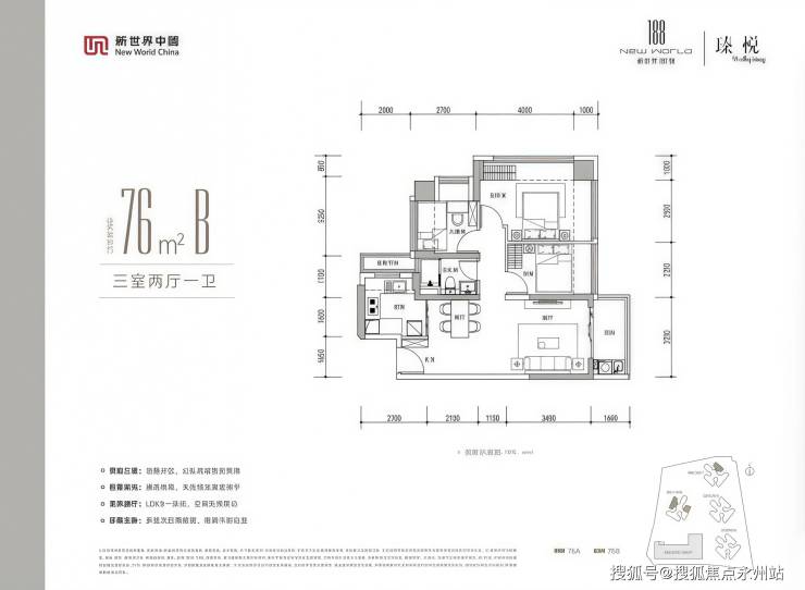 刚需入门—76㎡—3房1卫:新规优化设计,小面积也能实现三房布局,空间利用率拉满,总价250万起,刚需上车无压力,适合新婚家庭或单身白领。