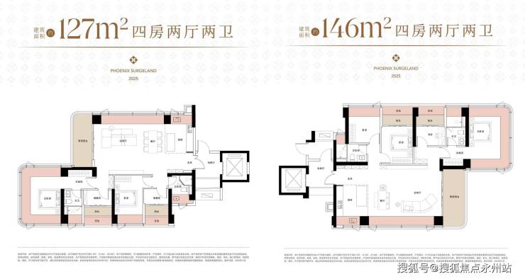 梯户比配置:项目采用低区4梯5户、高区4梯4户的设计,其中约127㎡以上户型实现专梯入户的尊贵配置。