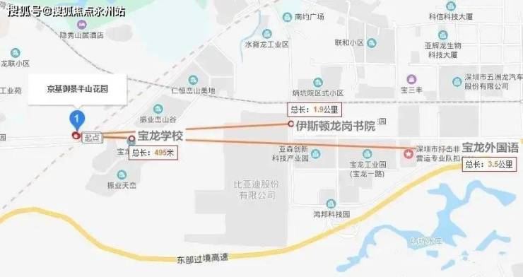 京基御景半山位于龙岗区宝龙街道宝荷片区,依山脚而建,总用地面积约6.3万㎡,规划总建面约31万㎡。容积率:3.45,绿化率:42.23%。由11栋共计15座高层住宅,以及13栋别墅住宅,另有1栋幼儿园和1栋综合楼组成。