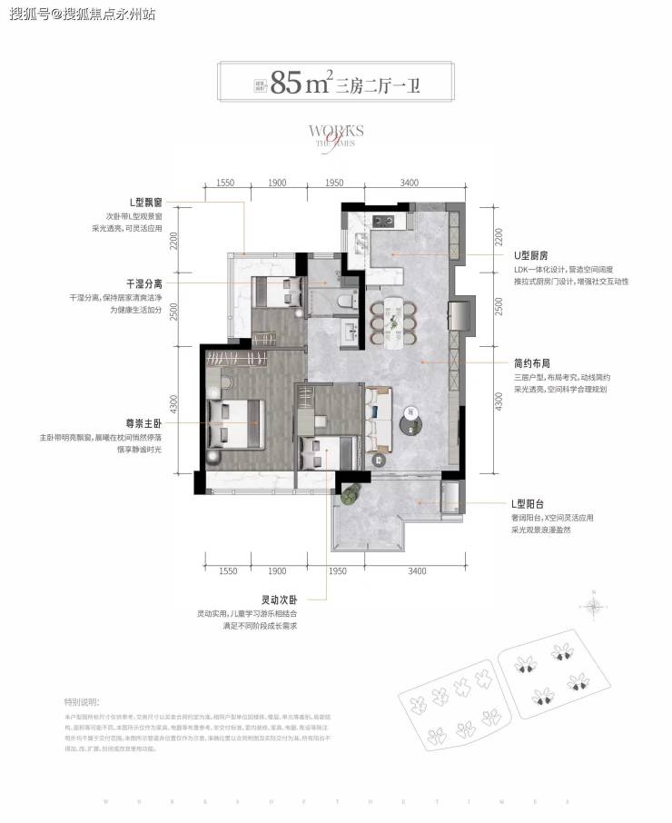 卓越星奕府推售产品为建筑面积约85-110平3房-4房户型。
