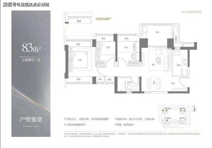 其中97平的三房两卫有做样板房,中规中矩,没有惊喜,也没有太大的瑕疵,小瑕疵就是使用率偏低。亮点户型反而是83平的三房和113平的四房,紧凑实用!