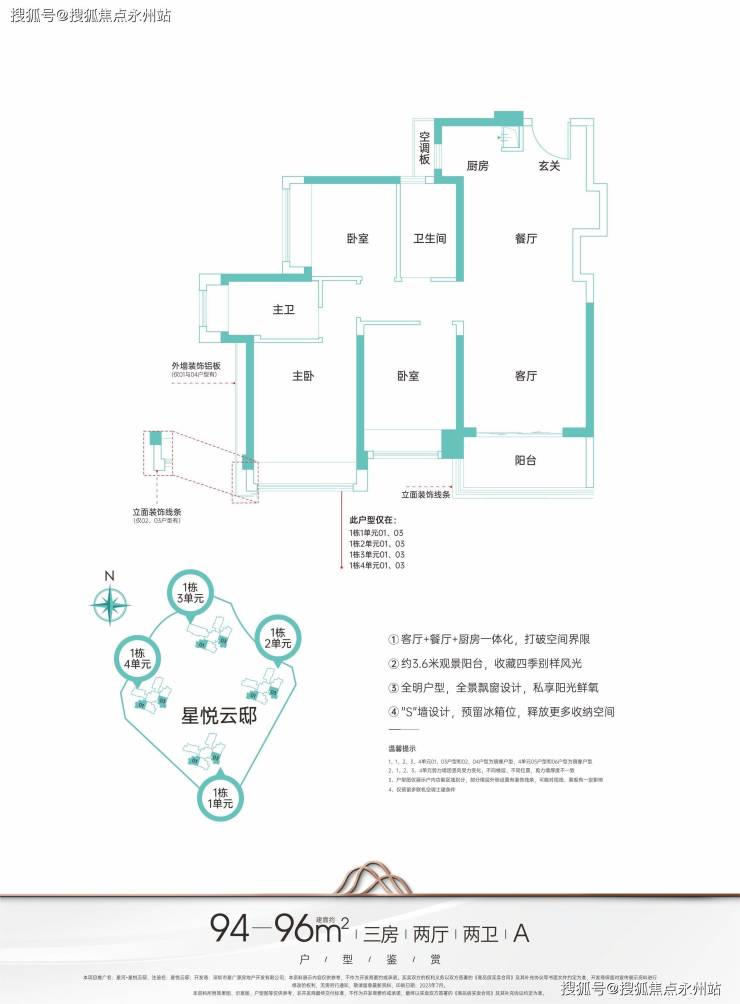 主力户型建面约95-124㎡臻品三至四房,启悦城市美好未来