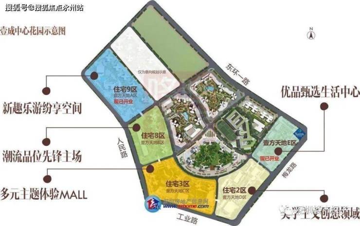 共规划有11个区,每一区相互独立又互为整体,住宅社区为独立的花园社区管理,再由约60万㎡的商业互联。