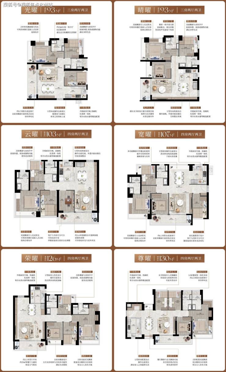 主力户型:93-130㎡全南向三至四房,涵盖横厅、竖厅、方厅等多元设计,得房率约90%(新规户型优势显著)。